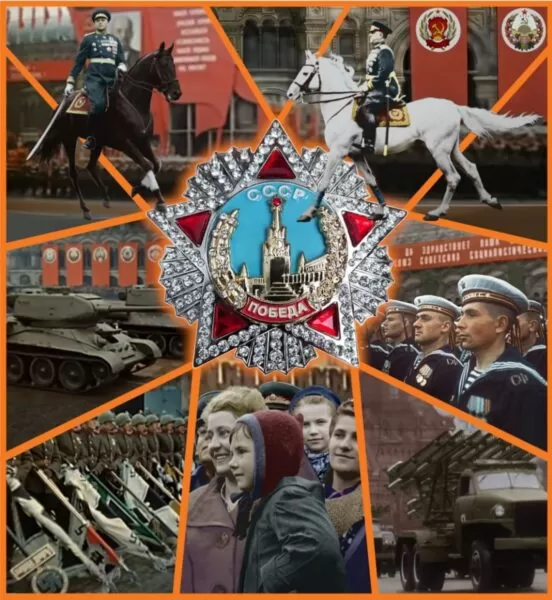 PS На открытке, которую мы подготовили к 9 мая 2022 г., изображен первый парад войск Красной армии на Красной площади, который прошёл 24 июня 1945 года в честь победы СССР над Германией в Великой Отечественной войне.
